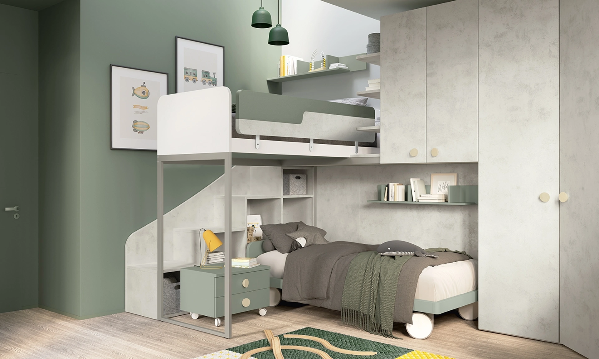 Il rinomato brand realizza diverse soluzioni moderne, in tal modo la cameretta risulterà un locale dove i piccoli potranno crescere e sognare. Per organizzare ottimamente le Camerette, Colombini Casa propone progetti articolati e versatili: sono molteplici le attività che i tuoi bambini svolgono lì. Venire in negozio vuole dire toccare con mano tutte le più esclusive soluzioni per bambini a soppalco in melaminico che presentiamo in negozio. Questa soluzione con finitura in melaminico, tra quelle a soppalco per bambini di Colombini Casa, soddisfa le richieste degli adulti e i gusti dei piccoli.